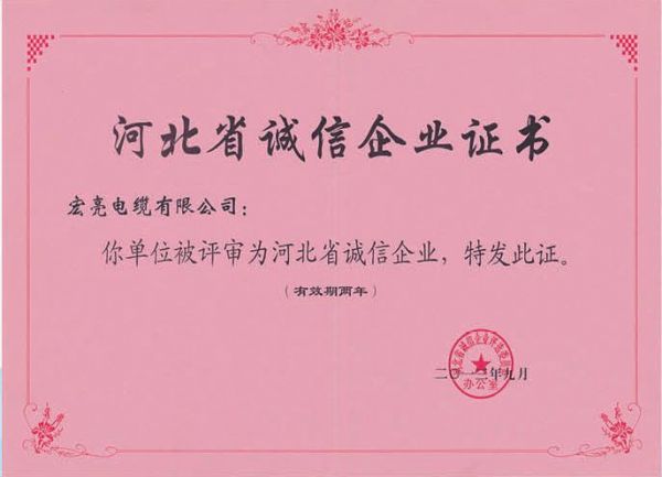 河北省诚信企业证书