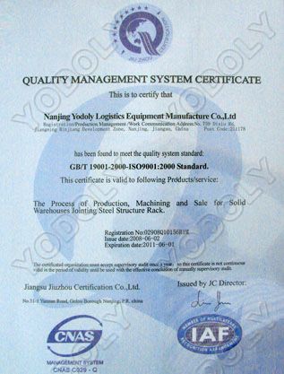 | 持证单位: 南京有多利物流设备制造有限公司 |