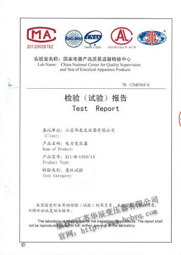 检验报告S11-1000(10) 发布时间: 2017-08-07 16:38:49 发布网站: 中国图书招标网